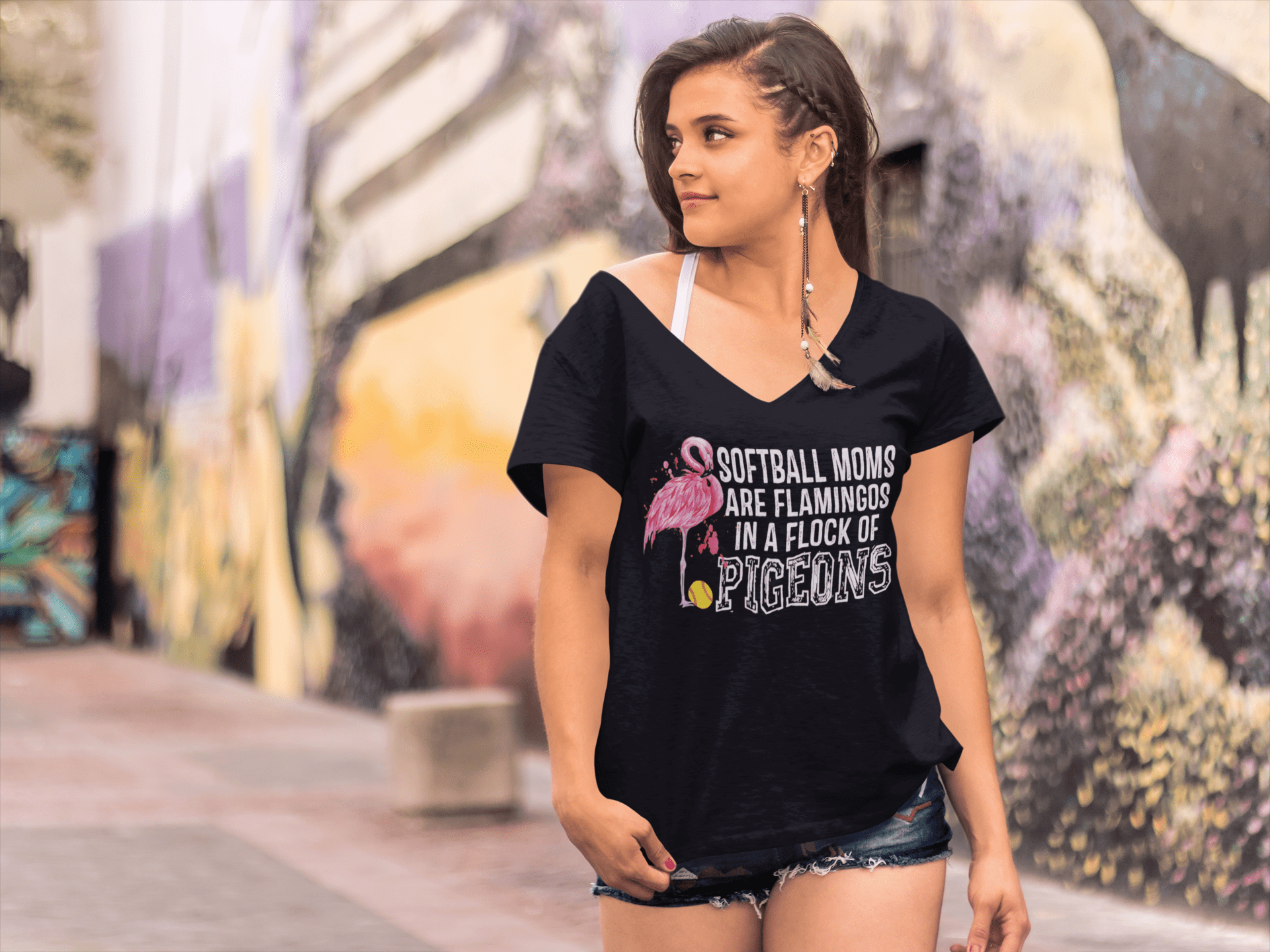 ULTRABASIC Women's V-Neck T-Shirt Softball Moms Are Flamingos - Funny Mom's Quote